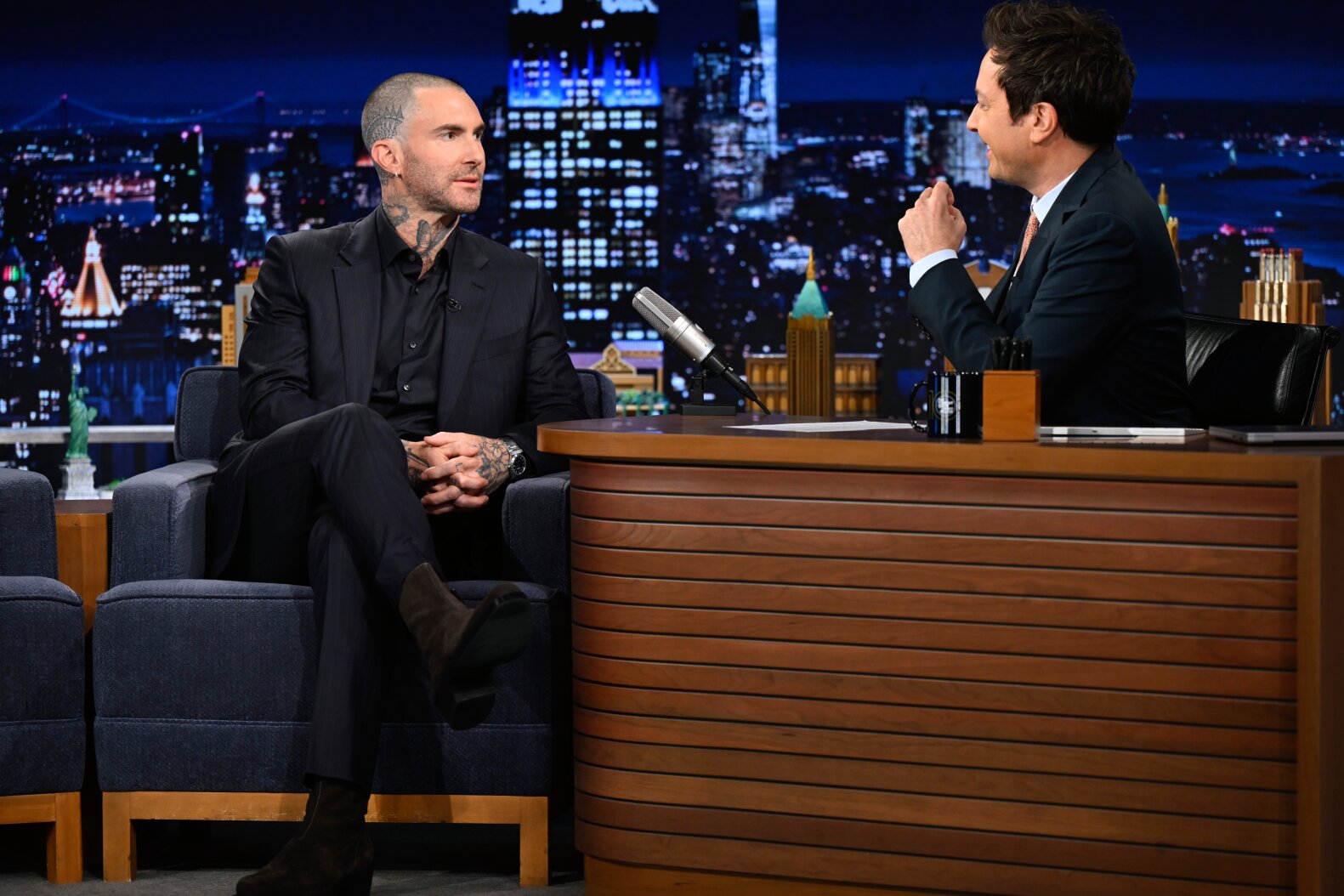 Adam Levine and Jimmy Fallon on 'The Tonight Show.' Todd Owyoung/NBC via Getty Images