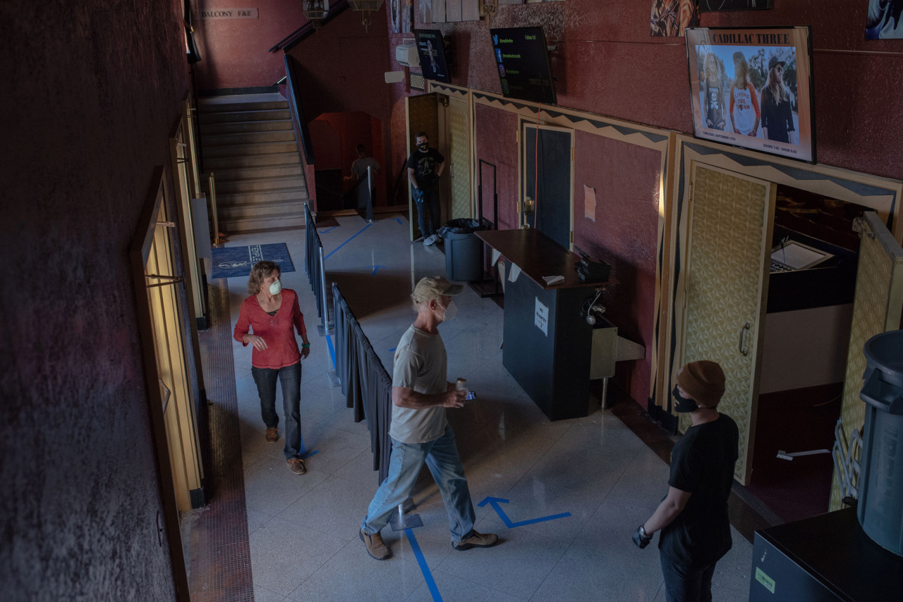 - Workers in gloves and masks ready the theater for the concert. Photo: September Dawn Bottoms for Rolling Stone