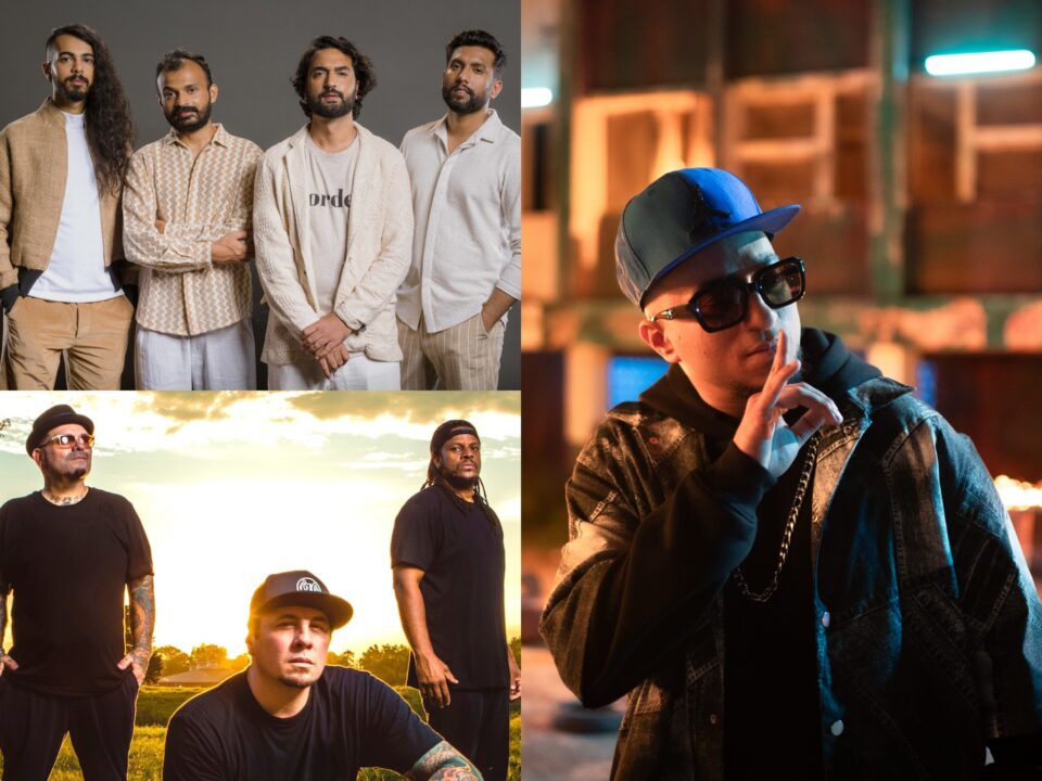 (Clockwise from top left) Parvaaz, Brodha V, and P.O.D will perform at separate festivals this week across India. Photos: Kevin Baldes (P.O.D.)