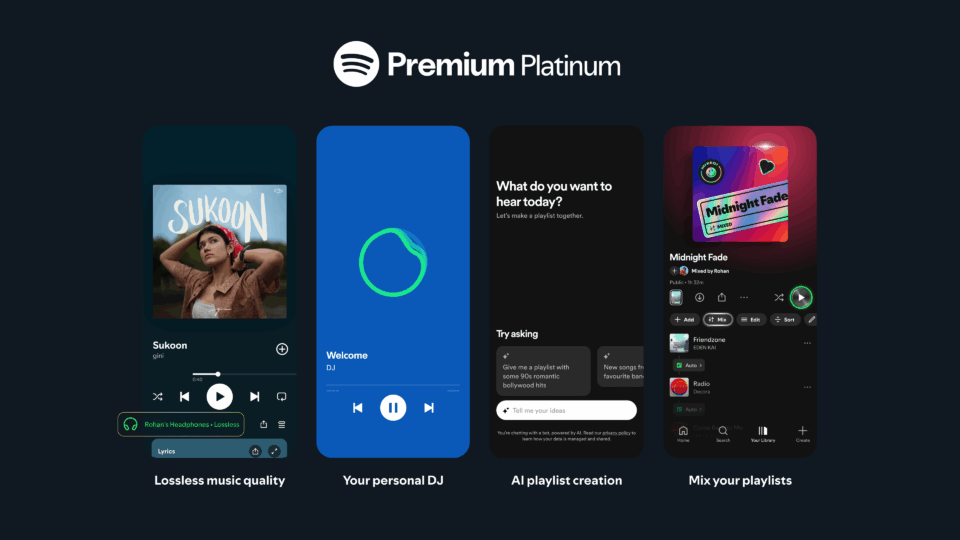 Billed as “the most advanced plan,” Spotify’s Premium Platinum subscription in India also includes features such as AI DJ (introduced internationally in 2023), a music companion that recommends old favorites and new genres, described as a “guide that knows you and your music taste so well that it can choose what to play for you.”